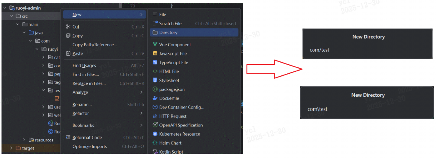 在 src/main/java 目录下创建包直接用 com.test 即可